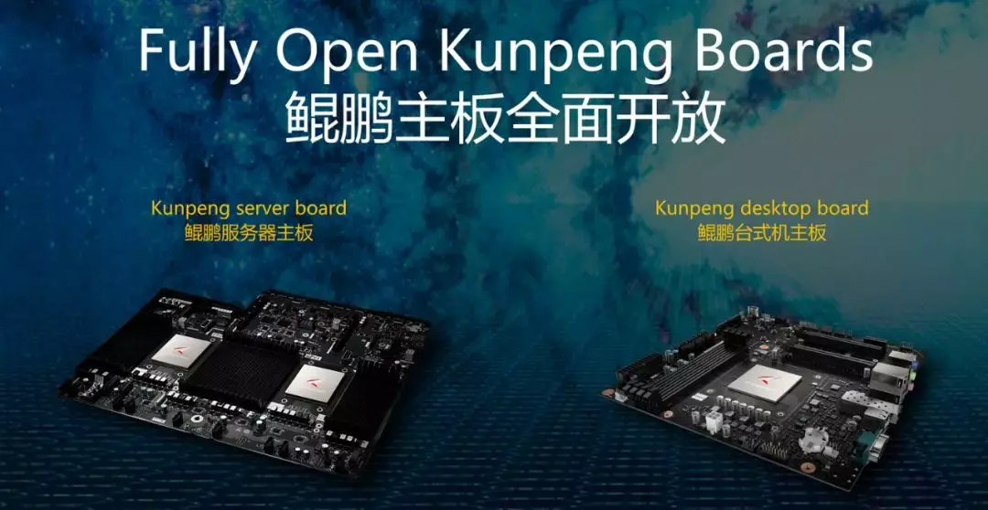 鲲鹏主板,用于快速开发服务器和台式机产品。采用 xPU高速互联、多合一SoC、100GE高速I/O等关键技术,不仅搭载鲲鹏处理器,还内置BMC芯片、BIOS软件。与此同时,华为也将开放主板接口规范和设备管理规范。