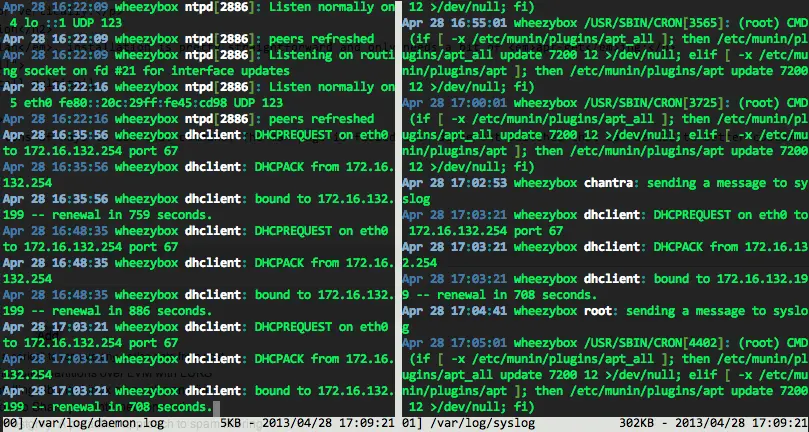 MultiTail 是一个开源的 Ncurses 实用程序,可用于在单个窗口或单个 Shell 中将多个日志文件同时显示到标准输出。