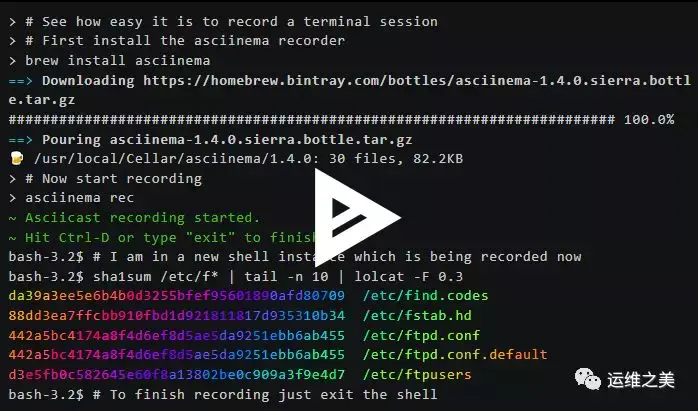 Asciinema 是一个终端下非常棒的录屏和回放软件。Asciinema 对终端输入输出进行捕捉,然后以文本的形式来记录和回放。