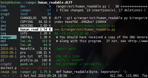 Ranger 是一个命令行下的文件管理器。Ranger 使用 Python 编写,默认为使用 Vim 风格的按键绑定。