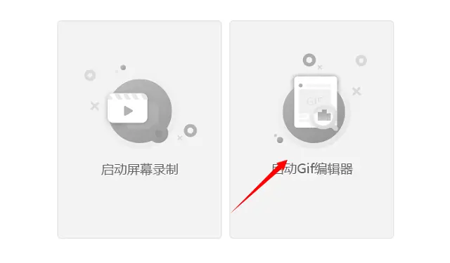 2、打开之后会进入一个选择的界面,这里有两个选择,分别是启动屏幕录制和启动GIF编辑器。如果没有视频素材的话可以选择录制一个,有的话就直接启动GIF编辑器。