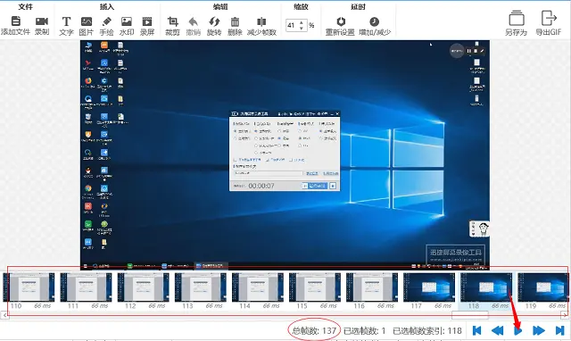 4、在视频导入完成后会自动转换成GIF格式,并且可以在下面看到该GIF动图的帧数,点击播放按钮还可以进行预览。