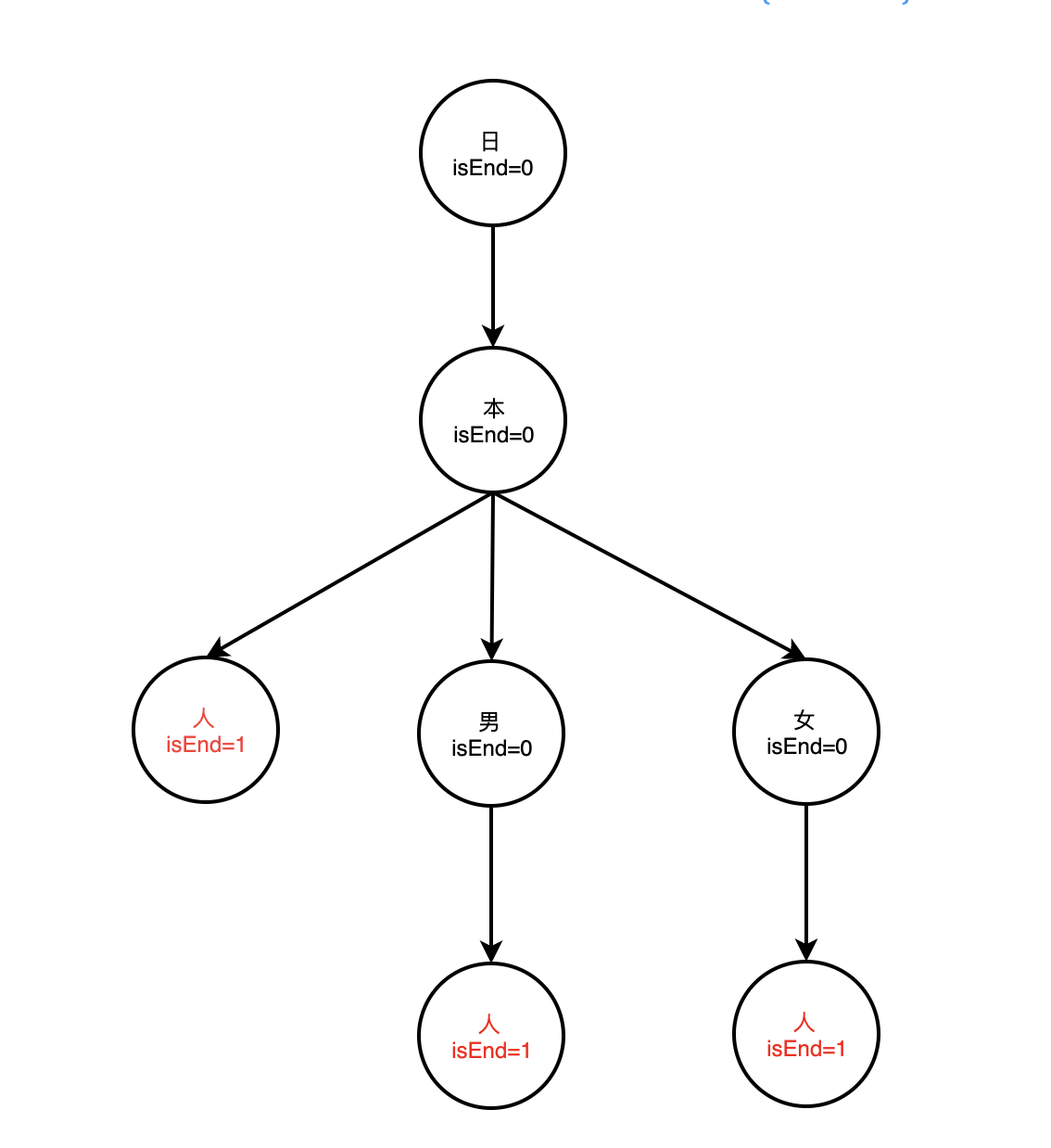 - { 日 = { isEnd=0, 本 = { isEnd = 0, 人 = { isEnd = 1 }, 男 = {isEnd = 0, 人 = { isEnd = 1 } }, 女 = {isEnd = 0, 人 = { isEnd = 1 } } } } }