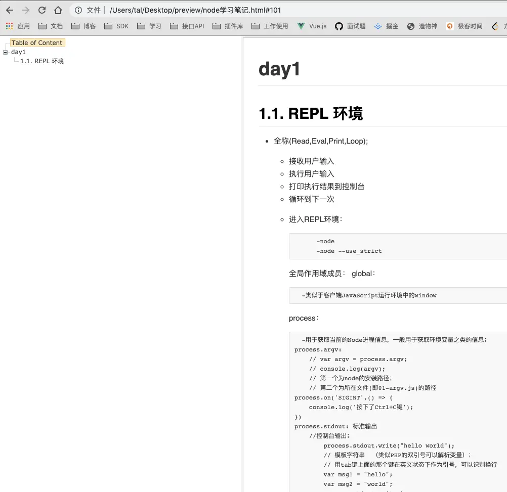 i5ting_toc mfisher 2019-09-19 2,043 阅读1分钟 i5ting_toc 用于将 markdown 文件转化为 html 字符串的样式。i5ting_toc是 node 环境下的实现工具,用于直接将markdown文件转化为网页,在浏览器打开。 安装 npm install i5ting_toc -g 使用 cd 到 Markdown 目录下,运行: i5ting_toc -f index.md 在 .md 目录下会发现 preview 文件夹,打开 html 就行。