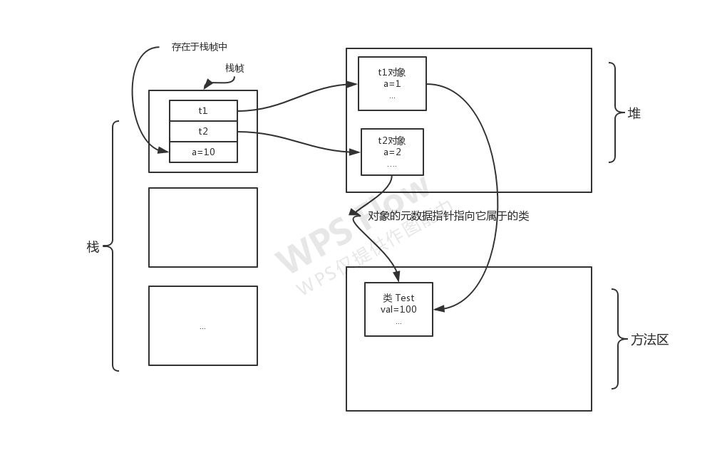 java虚拟机栈:每个方法在访问的时候都会创建一个栈帧,栈帧是每个线程私有的内存,不会被其它线程访问到,用于保存方法中用到的参数、局部变量、返回值等信息。