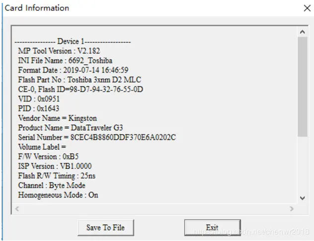 - 下载对应的主控程序 通过第一步获取了u盘的信息,闪存识别码: 98D79432 - Toshiba(东芝) TC58NVG5D2FTA10 - 1CE/单通道 [MLC-8K] -> 总容量 = 4GB。