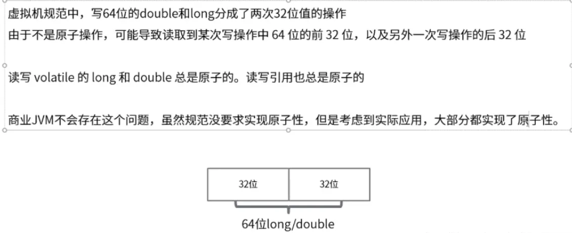 - JVM内存分为工作内存(线程独享的内存,保存在cpu高速缓存),和主内存(java堆,保存java对象实例的)。