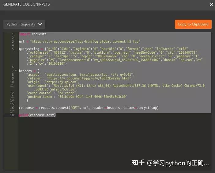 先直接把刚才生成的请求代码复制过来