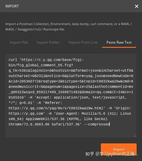 把刚刚复制的 cURL 粘贴进去