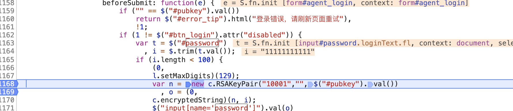 很明显的 RSA 加密,同时追进去就看到encryptedString的加密逻辑了,一起扣出来组装一下就得到加密逻辑了【图1-5】: