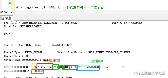 dbcc page(test,1,162,1) --索引leafdbcc page(test,1,178,1) -- 索引节点dbcc page(test,1,898,1) --根索引