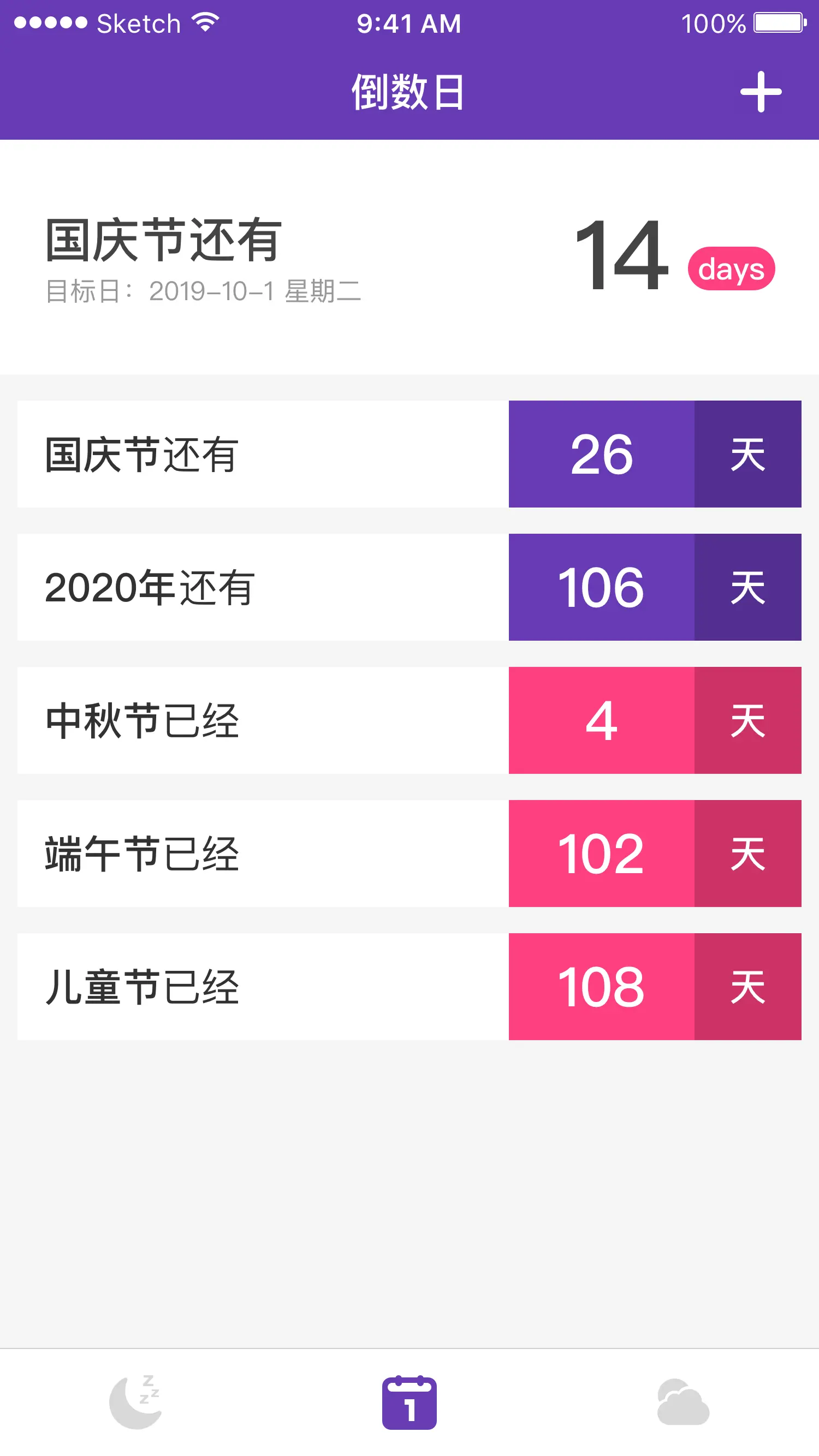 内置一个帮您记录生活中重要日子的小工具,比如自己生日还有多少天,与爱人相恋已经多少天,宝宝出生了多少天,而且还支持农历,重要日期醒目置顶,让我们把这些美好的时刻铭记于此。