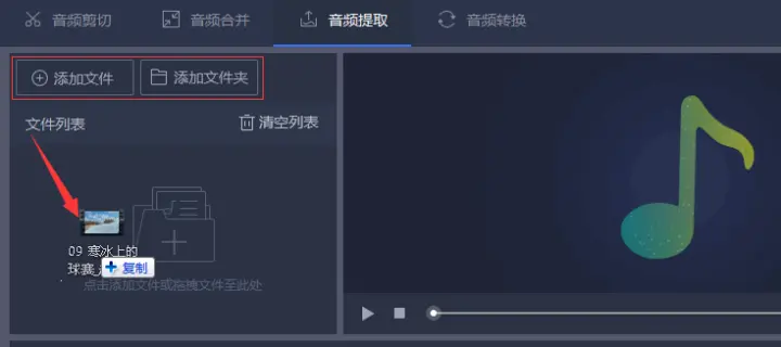 2、接着把你要提取mp3音频格式的mp4视频添加到软件中,添加的时候可以点击添加文件夹按钮,也可以把视频文件拖拽到空白处。