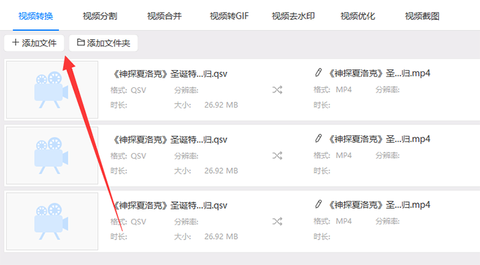 1、首先肯定需要把待转换格式的qsv文件添加到转换器中了。点击添加文件按钮将qsv导入其中,但是也可以选择qsv然后拖拽到软件中。