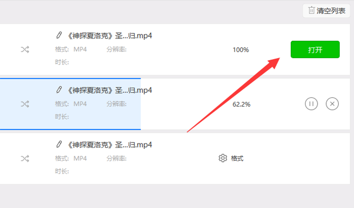 5、最后就可以播放观看mp4视频了。点击打开按钮或者是单击打开文件夹即可到达保存视频的地方了。
