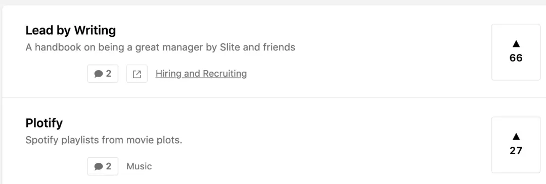 来自Product hunt的高点赞突出,将文字的优质数显示。