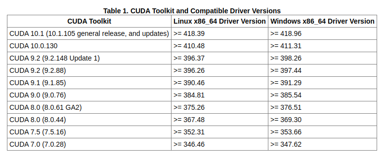 查看tensorflow版本和nvidia驱动对应的CUDA版本