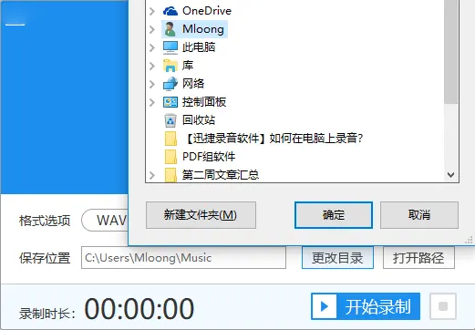 4、录音格式和录制环境都选择好后要自定义录好后音频的保存地点了,点击“更改目录”选择想要保存的地点。
