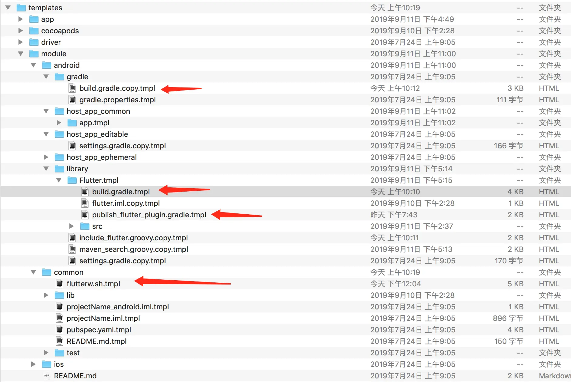 所有的模板目录都在Flutter_HOME/packages/flutter_tools/templates 下面:
