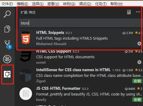 1.先安装 插件 在vscode中插件下载并重新加载HTML Snippets