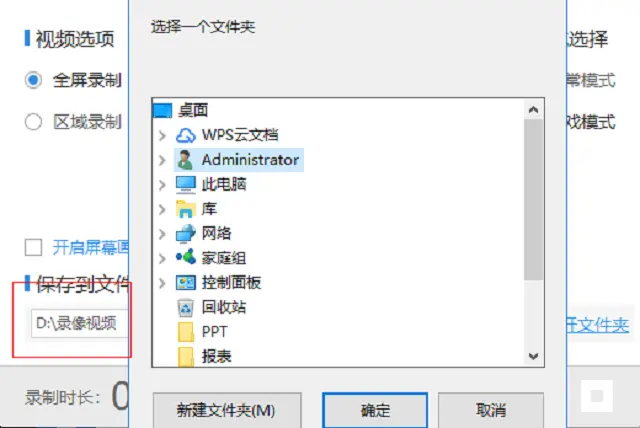 3、以上参数都设置好了之后再选择视频保存的文件夹,录制的游戏视频会被保存到这个文件夹中。