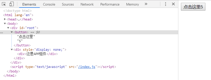现在我们来实现一个简单的点击按钮+1的demo,并用createPortal方法挂到根元素#root上