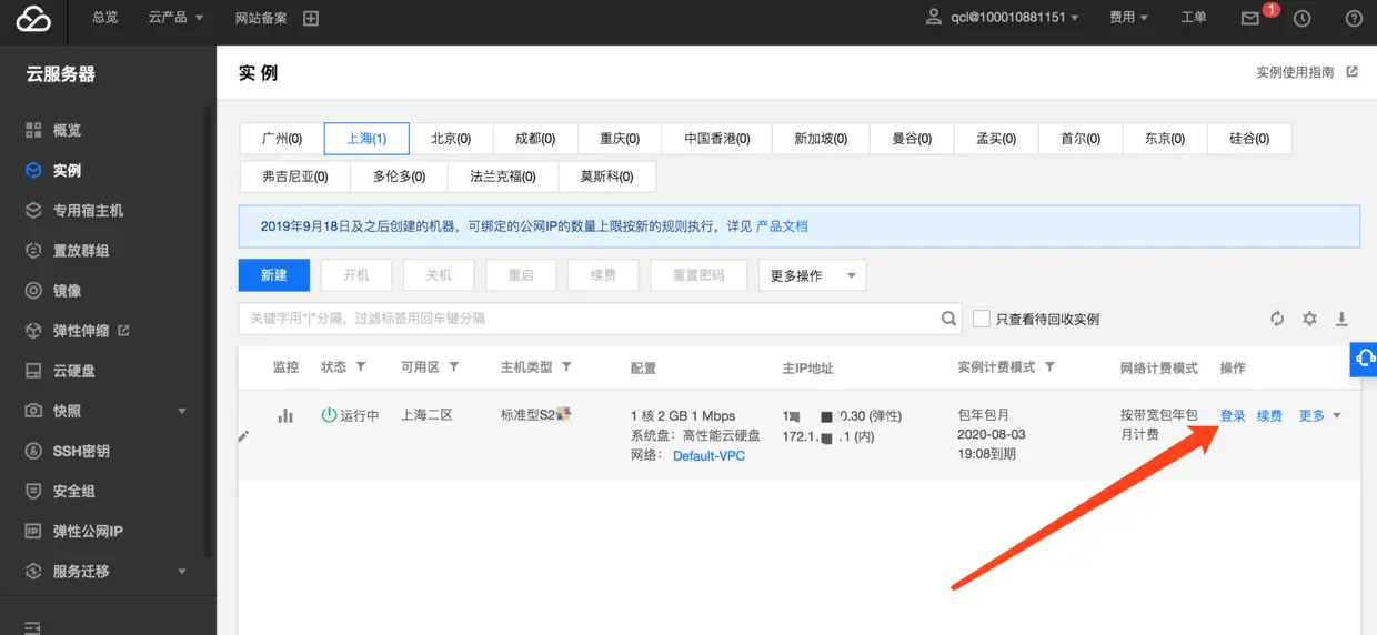 点击登录,登录服务器