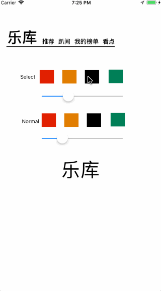 首先点击 Tab, 选中的Tab高亮,上一个被选中的Tab恢复原色。 然后就是做放大缩小动画了,选中的Tab进行放大,上次选中的Tab缩小。 从下方的效果可以看出,放大时字体是不会变虚的,肯定不是用的仿射变换这种放大方式。