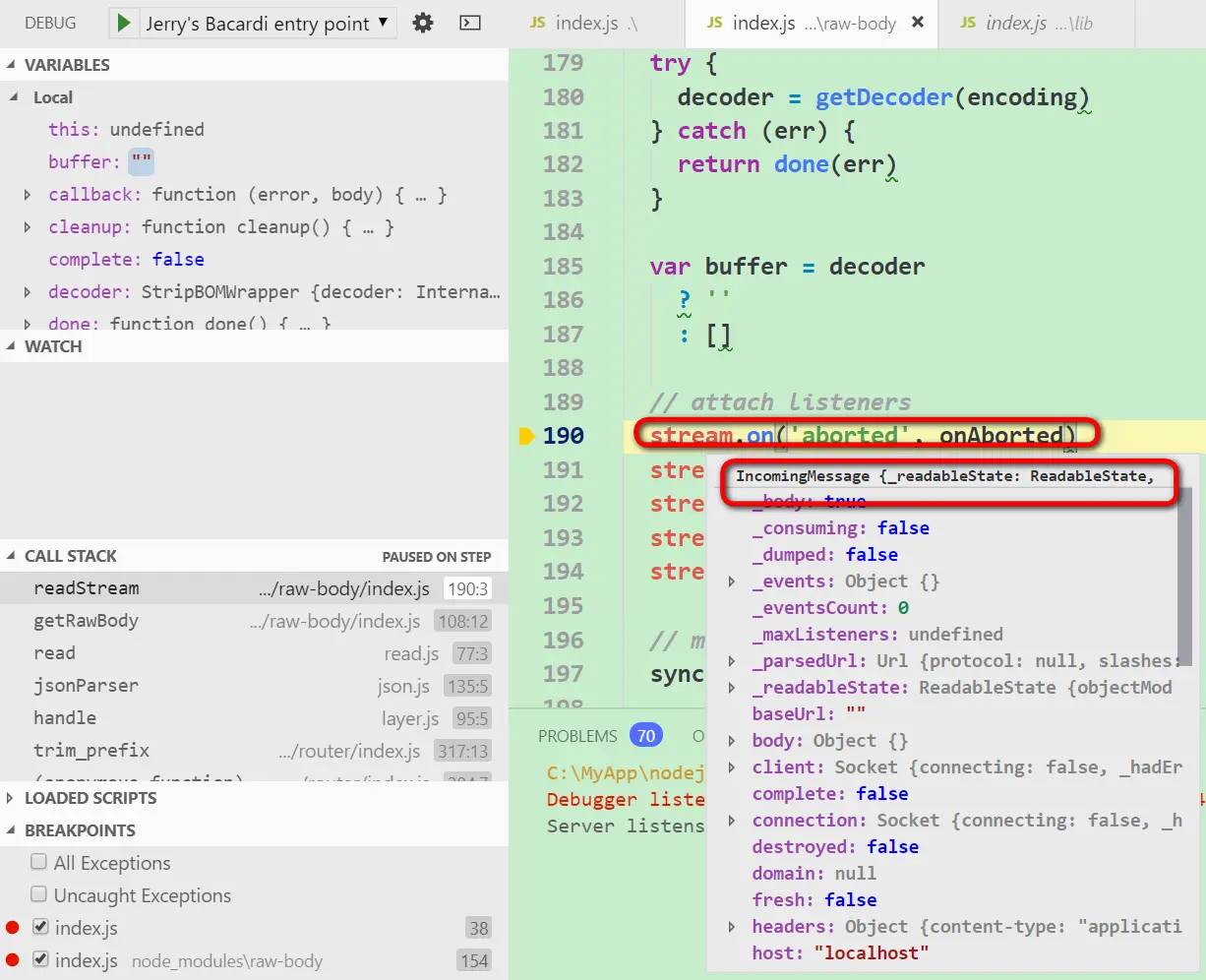 当inbound message的数据全部读取完毕后,触发End事件,执行注册的回调done函数: