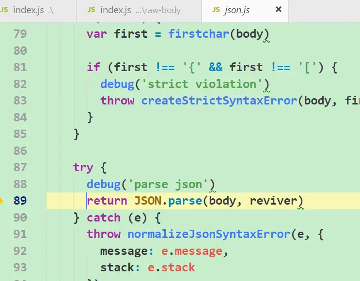 由此可见,body-parser这个库最终使用的仍然是原生的JSON.parse API来完成解析任务。