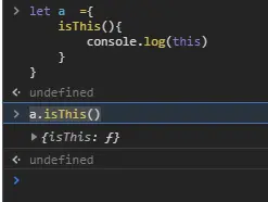 var a ={ // 声明一个a对象,包含一个isThis方法