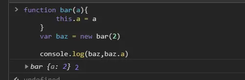 其实在我们第一段的代码中,全局调用了var baz = new bar(2) bar函数中的this也没有指向window 而是指向了心创建的对象baz