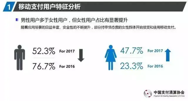 移动支付用户比例为:男52.3%和女47.7%;