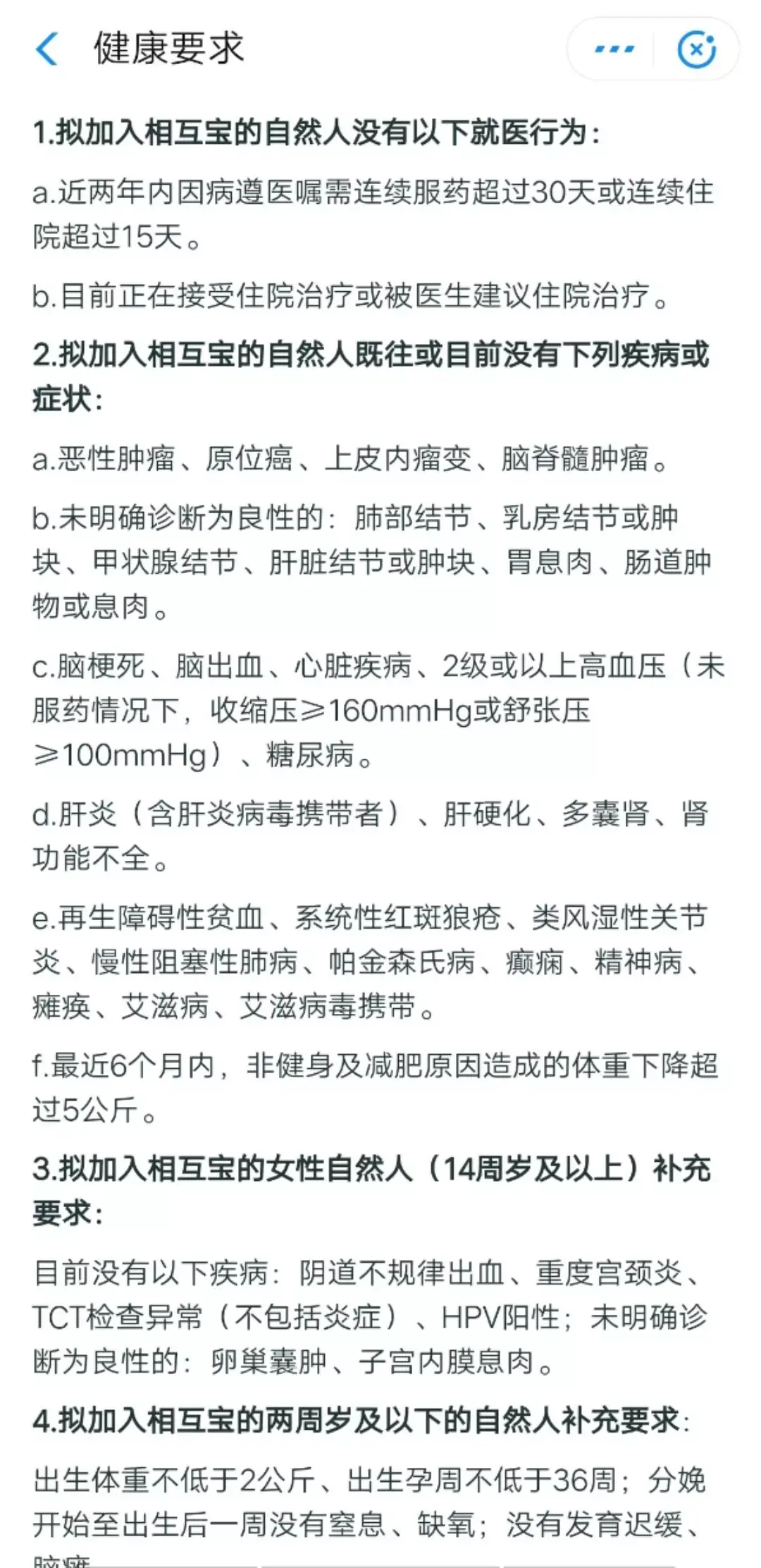 2、加入相互宝时,要符合健康要求