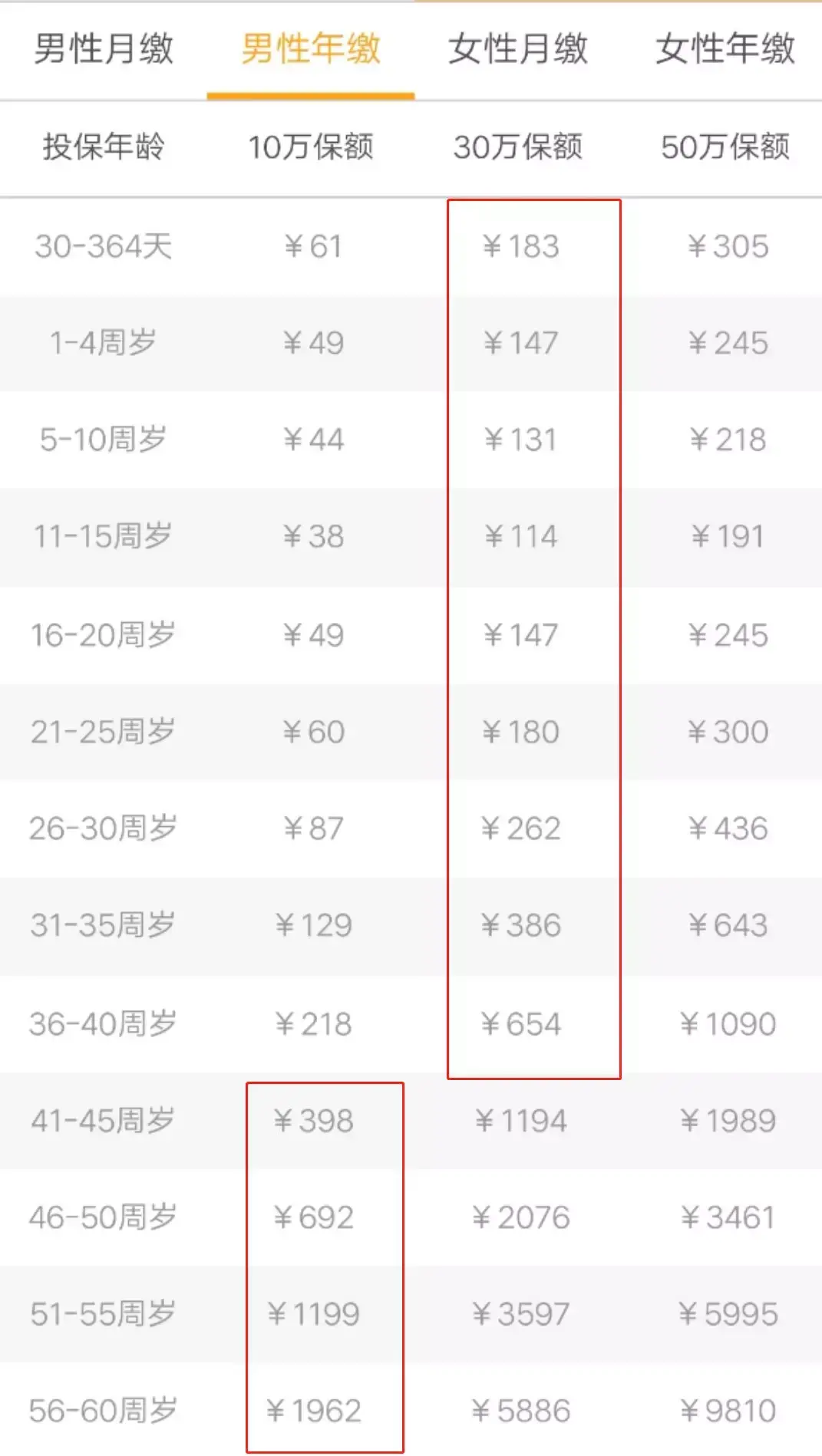 已知,相互保0-39岁,保额30万;40岁-59岁,保额10万。