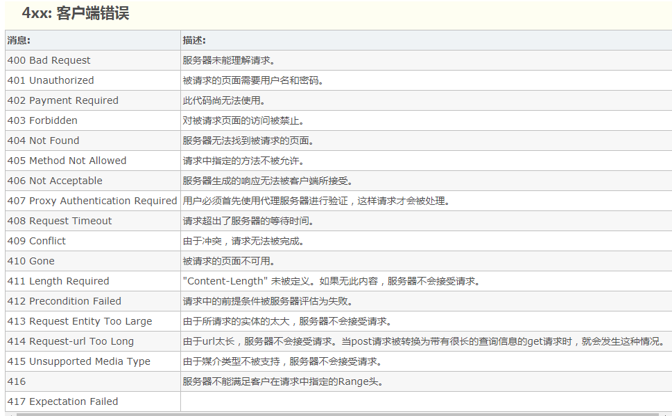 当然,为了更好的进行接口测试,需要了解经常使用的http状态消息,比如请求成功是200 OK,但是http状态消息除了这个之外还有很多的,http的状态消息,简单的来理解就是当浏览器从web服务器发送请求时,可能会请求成功,可能请求失败返回其他的错误信息,从而返回各种情况的htttp状态消息。比如百度首页输入搜索关键词,可能会返回成功的后的搜索信息,但是也有可能搜索失败的情况,当然这种情况一般很少出现,毕竟百度不会出现这么低级的错误。下面分别列出经常常见的http状态消息,这些信息收集于w3c网站,见如下的http状态消息: