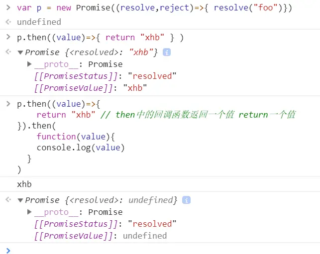 return 'xhb' // then中的回调函数返回 return一个值
