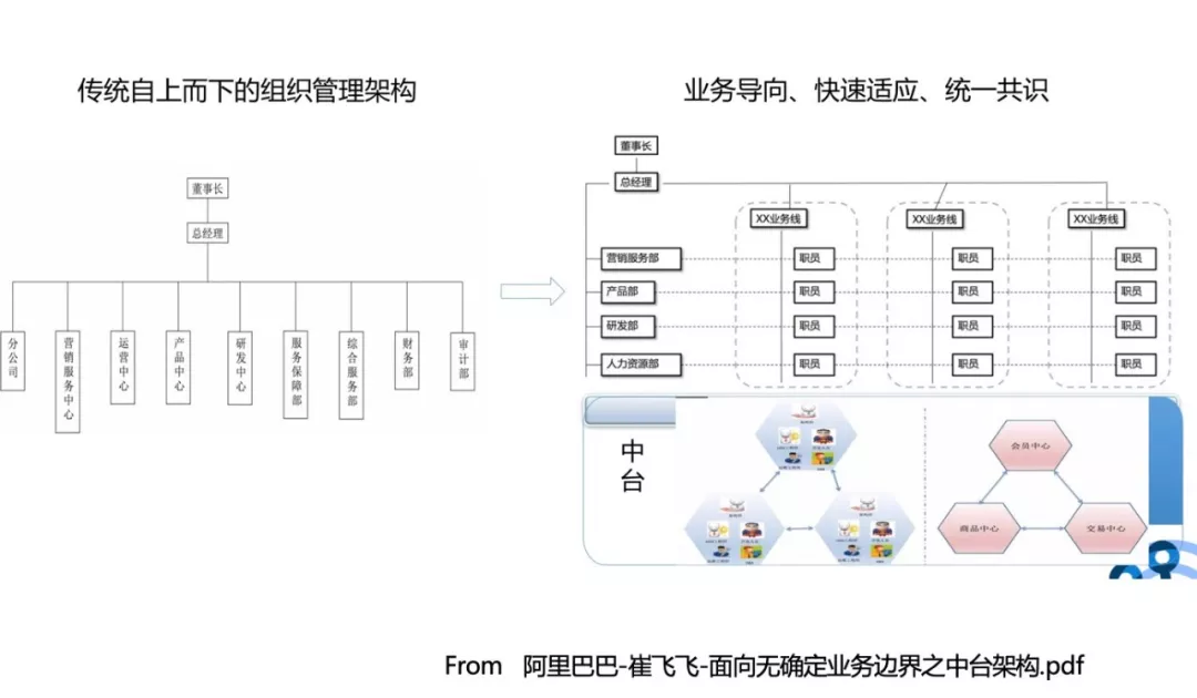 //笔者觉得“数据中台”另篇为好,另外“组织中台”这个词有点生造, 对应业务中台也好,数据中台也好,按照康威定律需要有相应的组织配套支持。中台是自上而下的工程,“组织中台”不能独立存在。