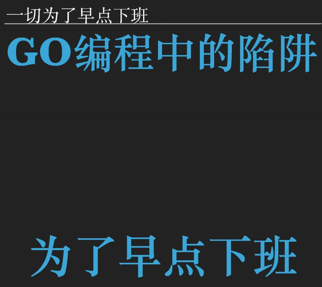 我大概是从 2015 年开始写下第一行 Go 代码,今天主要给大家分享我这几年以来所积累的一些让我非常难受地方以及感到崩溃的一些 BUG,我希望我的这些痛苦可以让大家快乐,当然我也希望我积累的这些经验以及案例可以拯救大家一些睡眠的时间,让我们有更多的时间去浪,去玩耍。为此,我们今天有一个副标题 ——— 为了早点下班。