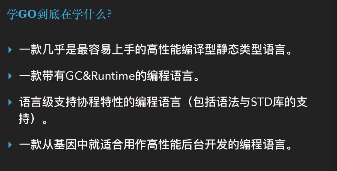 接下来提一下我们学习 Golang,到底在学习什么样的东西?