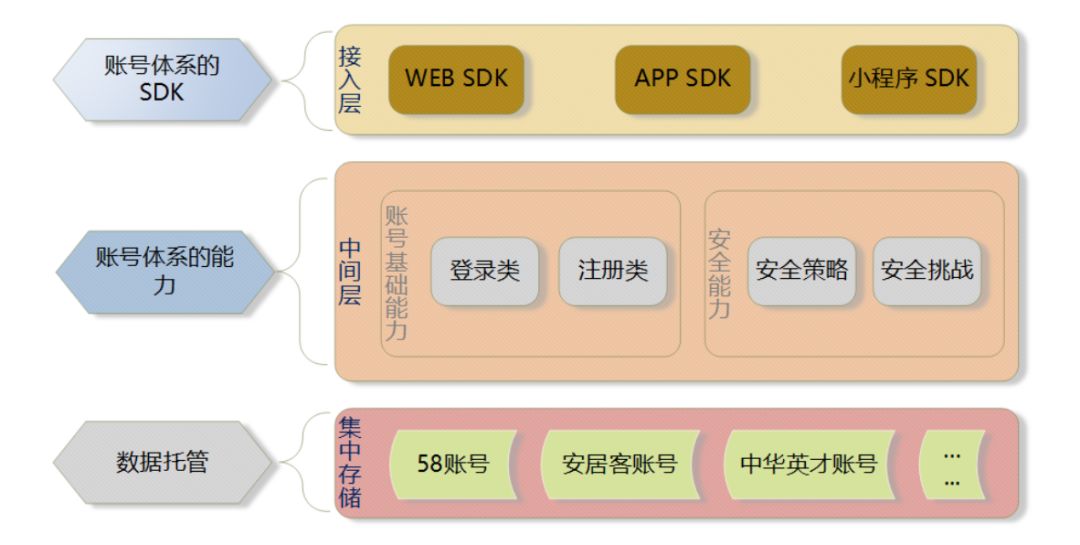 账号体系是每款互联网产品的“标配”,58集团拥有多条产品线多种账号体系,有先期孵化(一直都是58账号体系)也有后期收购(非58账号体系),情况多种多样较为复杂。 而不同账号体系不同产品线都需有相应的团队分别进行开发维护,造成资源配置浪费,同时账号功能系统及安全体系风控能力参差不齐。