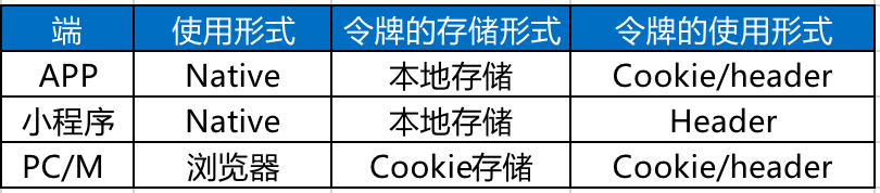这些接入方式中APP端和小程序端基本保持一致,令牌由客户端托管;PC端和M端的令牌基于Cookie的方案。