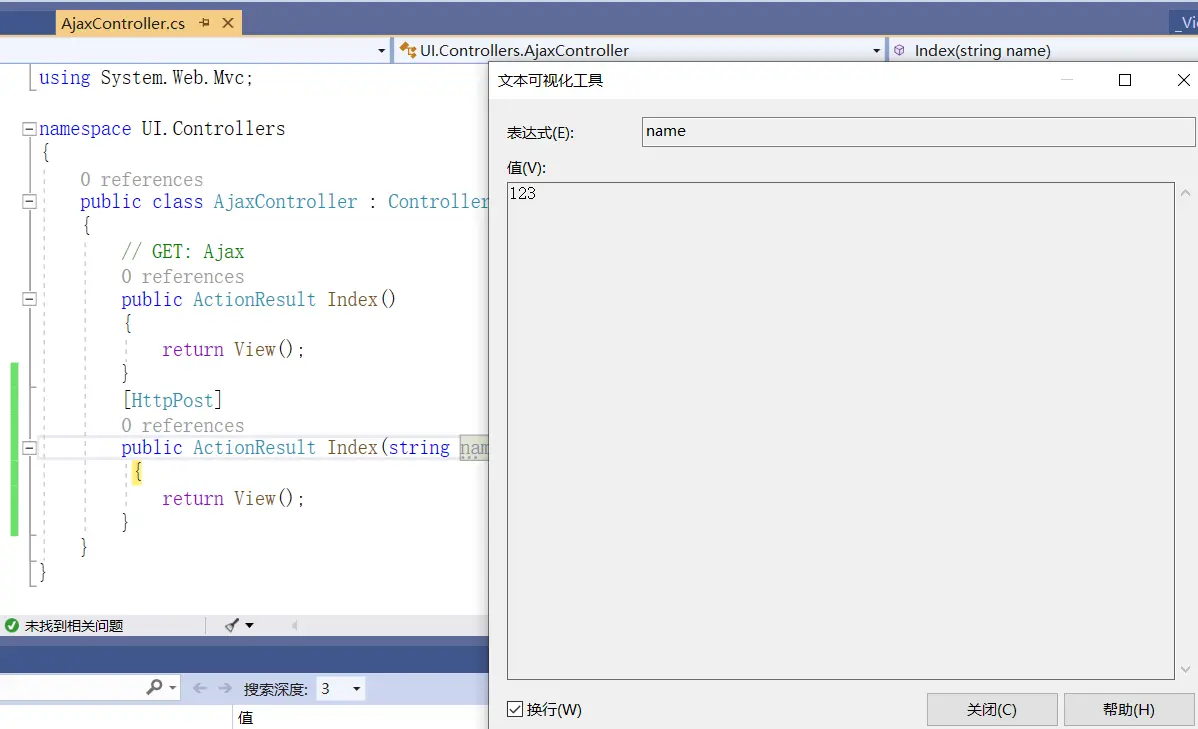 - 使用Ajax.BeginForm()表单,第一个参数是方法,第二个是控制器