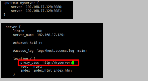 3、在 nginx 的配置文件中进行负载均衡的配置