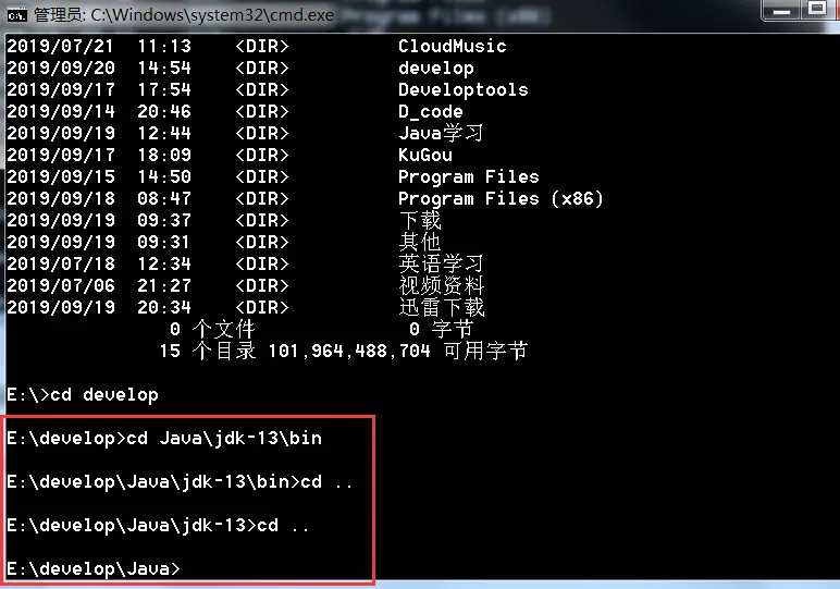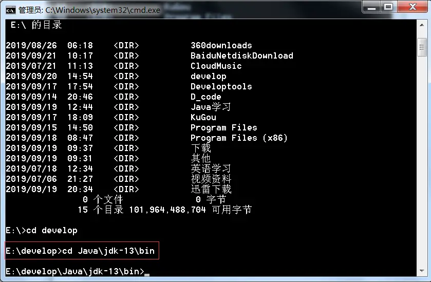 输入“cd 单机目录名”,按下回车键,如“cd develop”(cd后有空格)