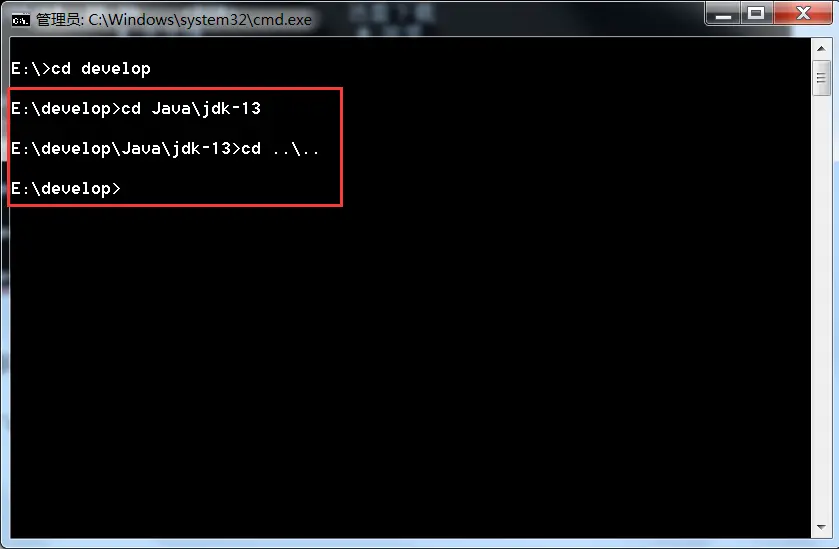 输入“cd ..\..” ,按下回车键(此处回退多少级,就打多少个\..)(cd后有空格)