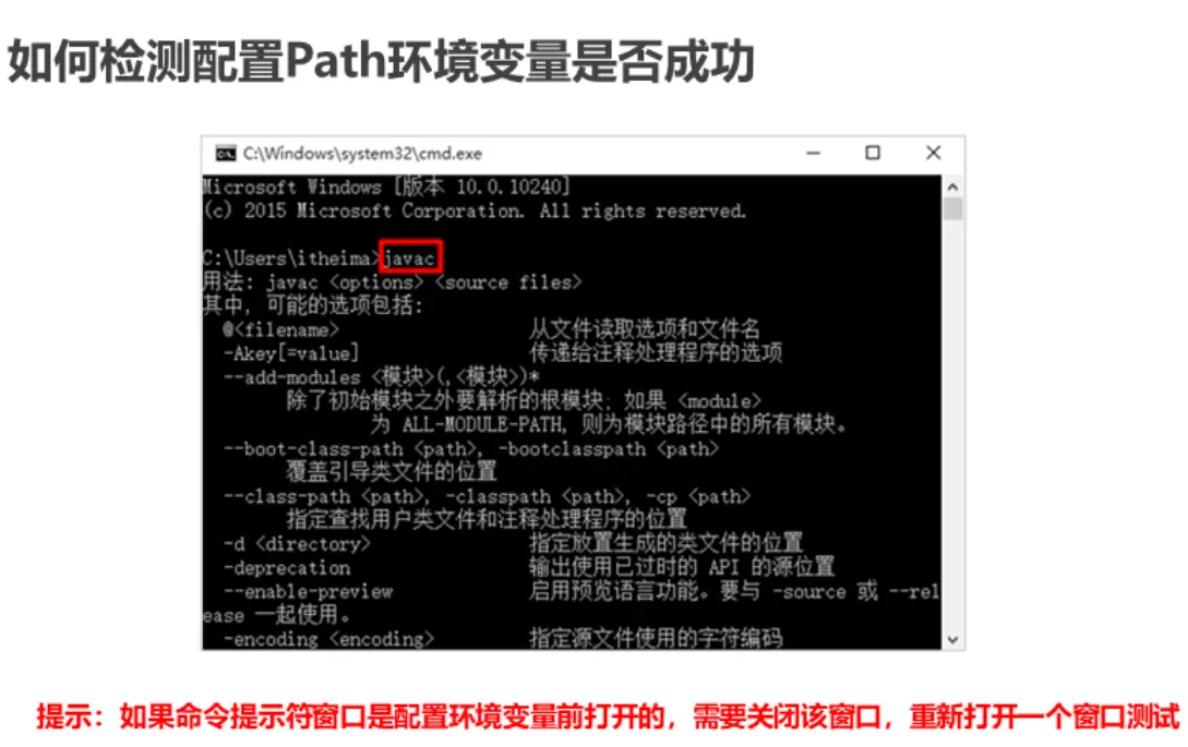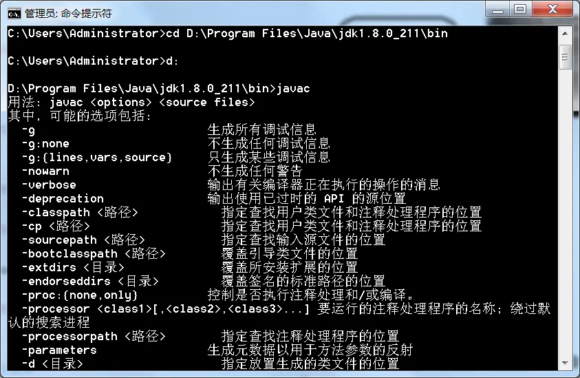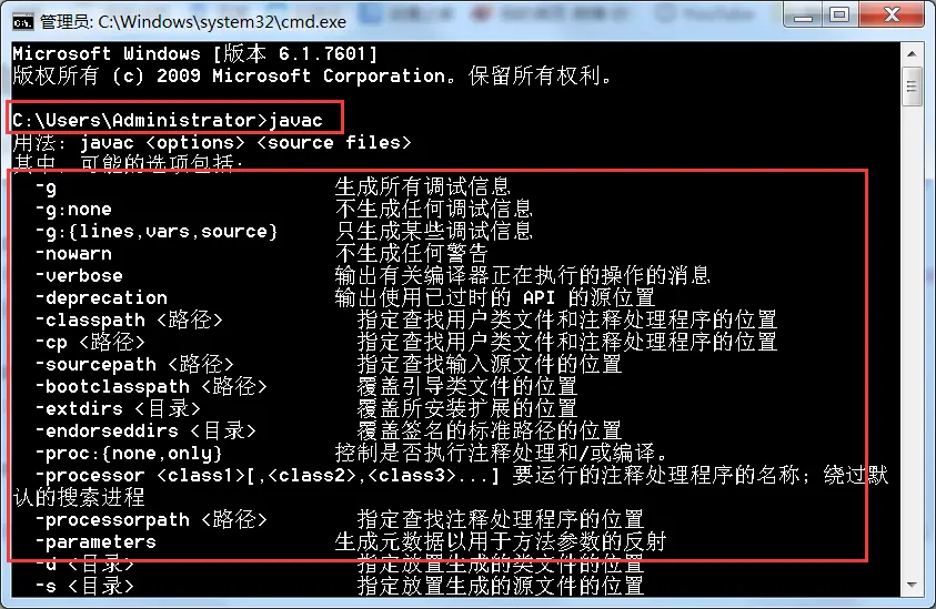 输入Javac命令,如果看到这样子的情况,说明你的环境变量已经配好了。