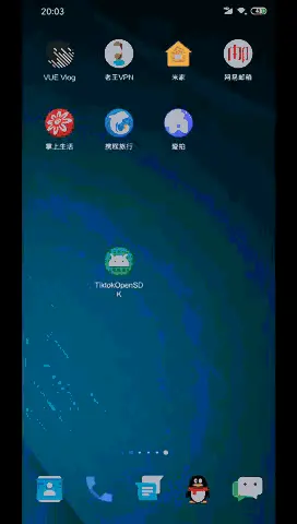 抖音作为日活量过亿的产品,在今年年初,也终于上线了抖音开放平台,目前支持app接入登录与分享。app通过抖音授权获取用户信息;分享视频并进行处理,提高app在抖音的曝光度。