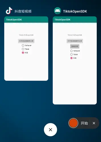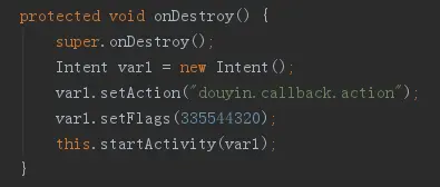 第一个问题好解决,把MainActivity的启动模式设置为singleTask就行了; 第二个问题,怎么回到启动分享的那个activity?比如一个实际的场景,A是根activity,A可以启动B或者启动C,然后B和C都可以唤起抖音分享,那么分享后回到哪个activity得知道,也就是需要知道栈顶activity。就跟唤起微信,取消分享的场景一样(不知道抖音为什么不做成和微信一样的处理方式,还需要开发者额外处理)。
