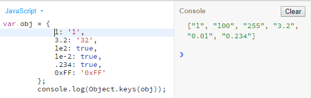 - 对象中的键名不加引号时,其必须按照标识符来进行书写,但是额外允许数字作第一个字符。